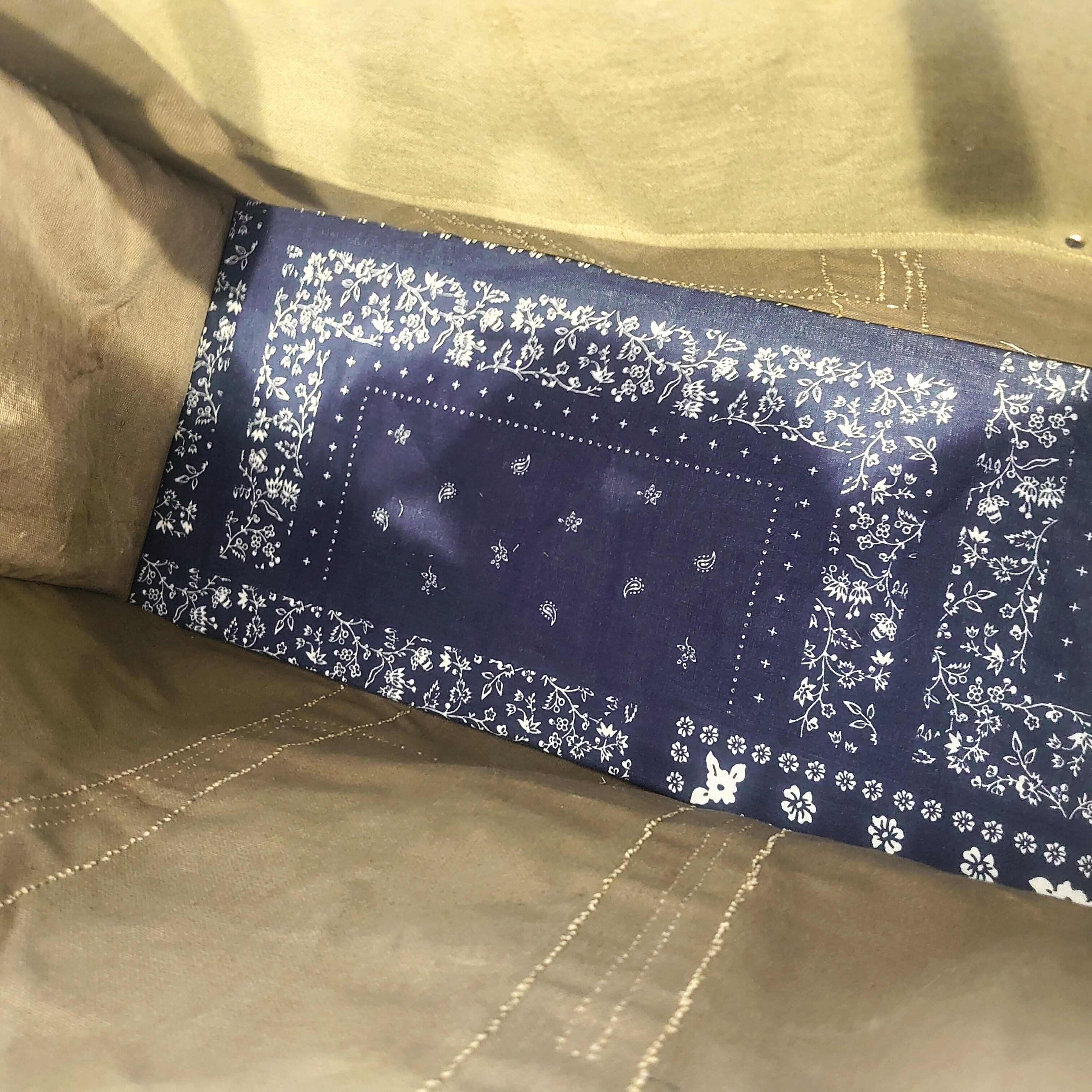 ヴィンテージの生地は裁断する箇所によっても個体差があり、1つ1つ色合いや雰囲気が異なる為、1点物と言える仕上がりです。