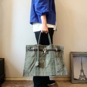 アメリカ軍で使用されていた、ヴィンテージのミリタリーテント生地を再構築して作られた、味わいのあるトートバッグをベースに本革のベルトや金具を施して、デザインとしても洗練された印象に。