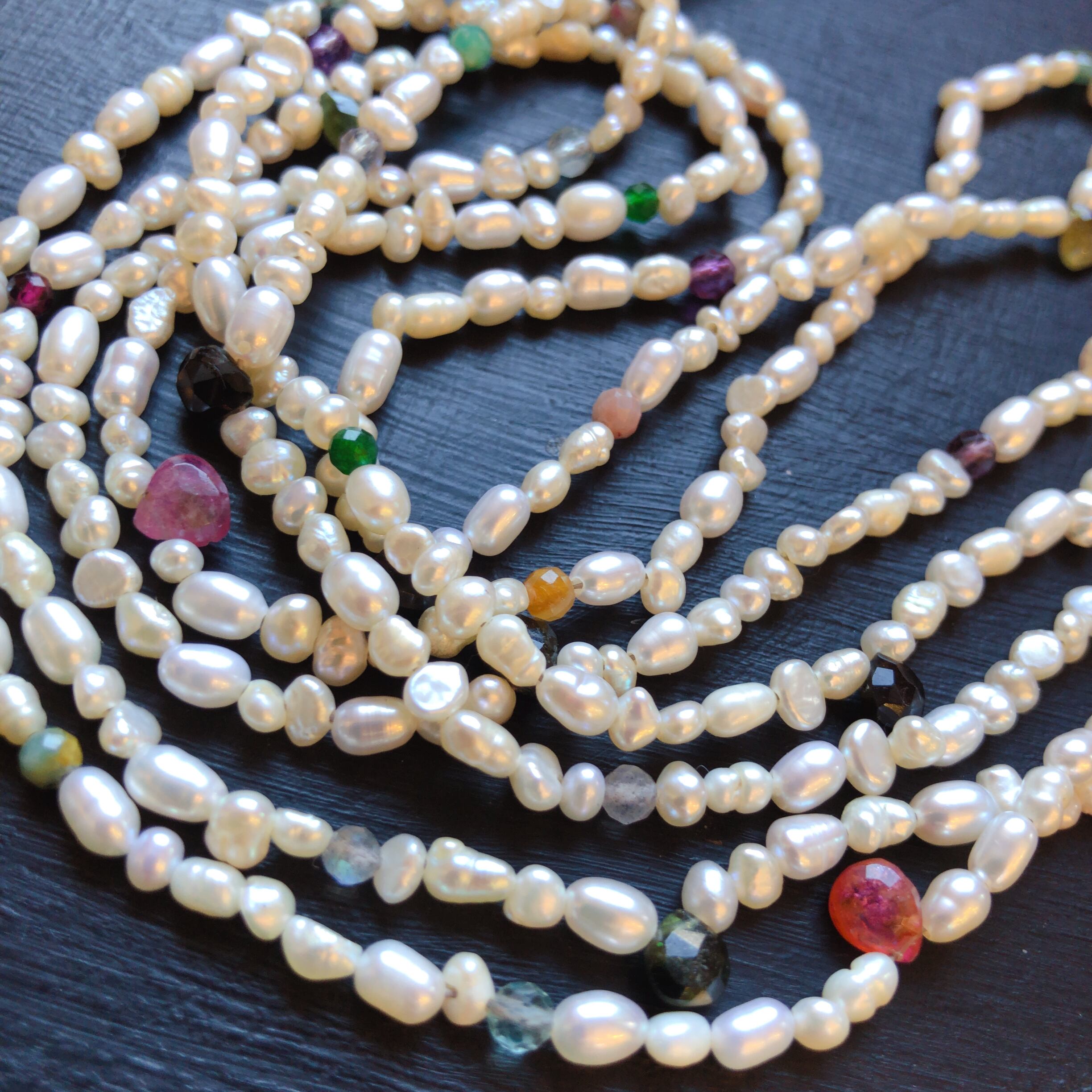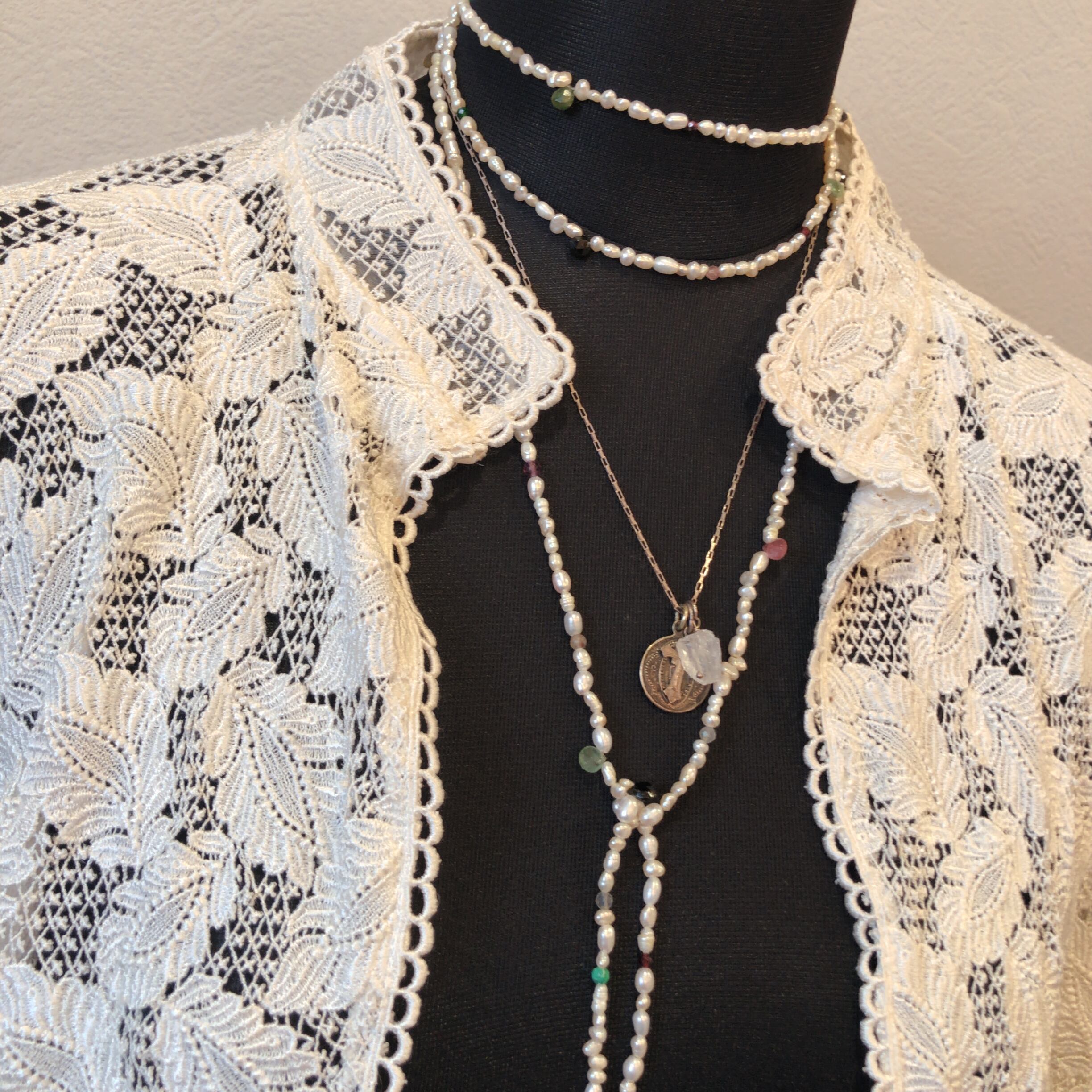 淡水パール×彩り天然石のロングラリエット シルバー925