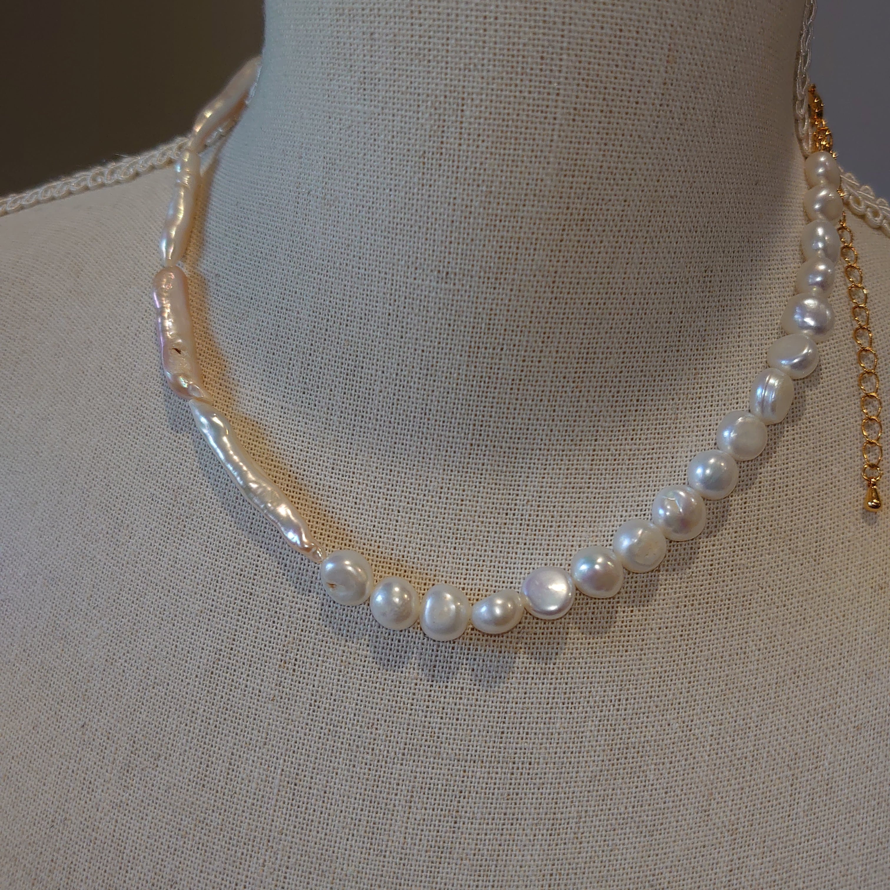美しいバロックパールで作られたネックレスは存在感と気品を兼ね備えた逸品となっています。