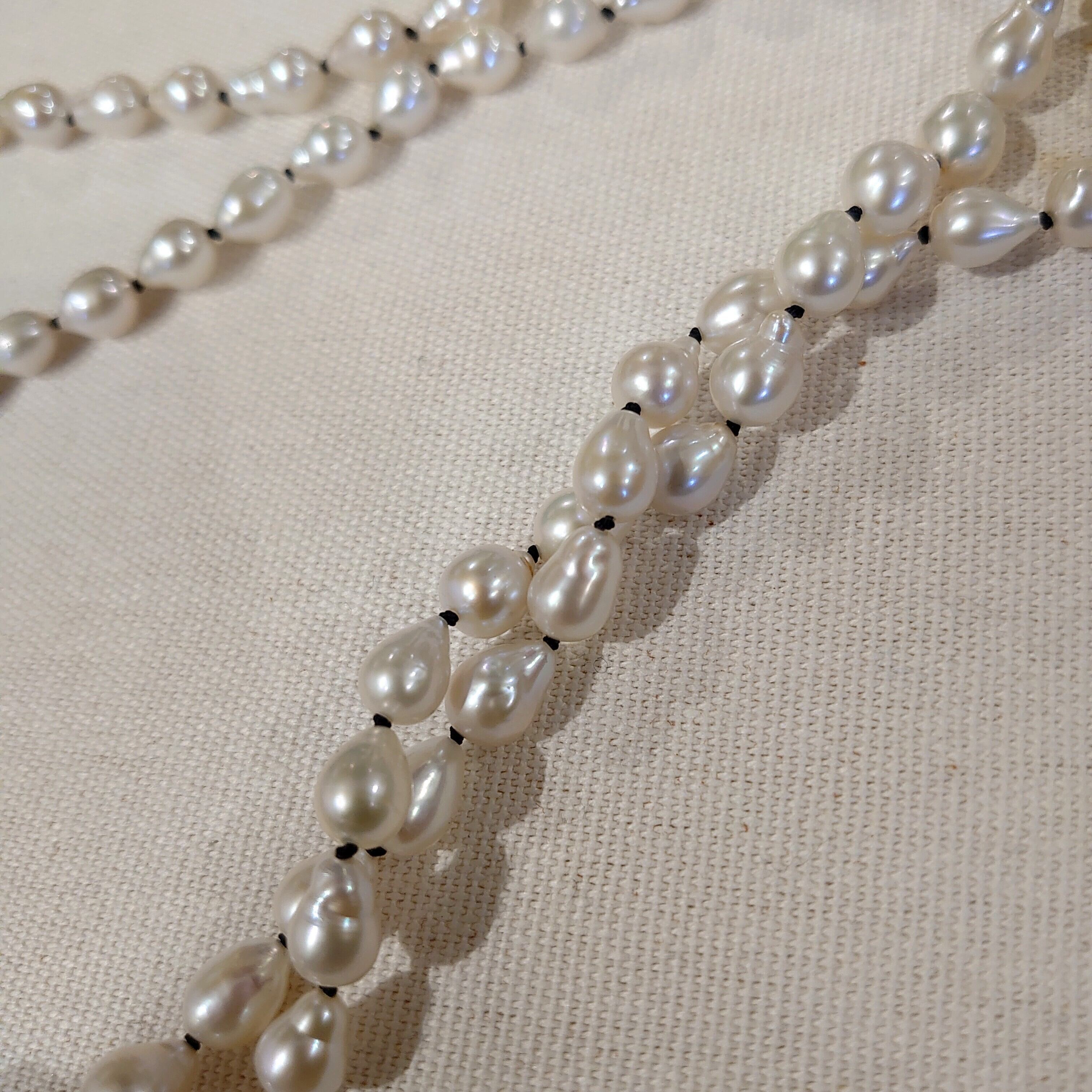 すべての真珠の間に結び目を入れる加工です。