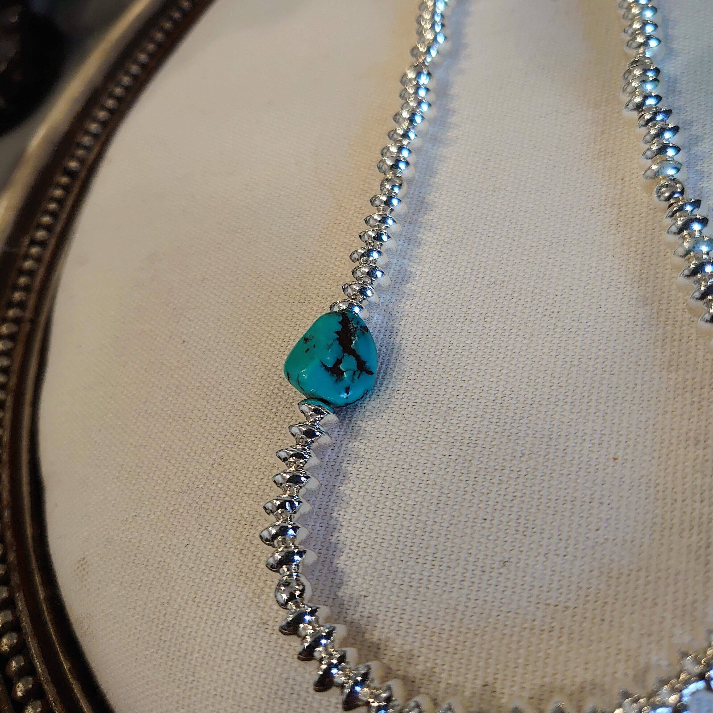シルバー925パール コンビネーション タンブルカットターコイズ デザインネックレス