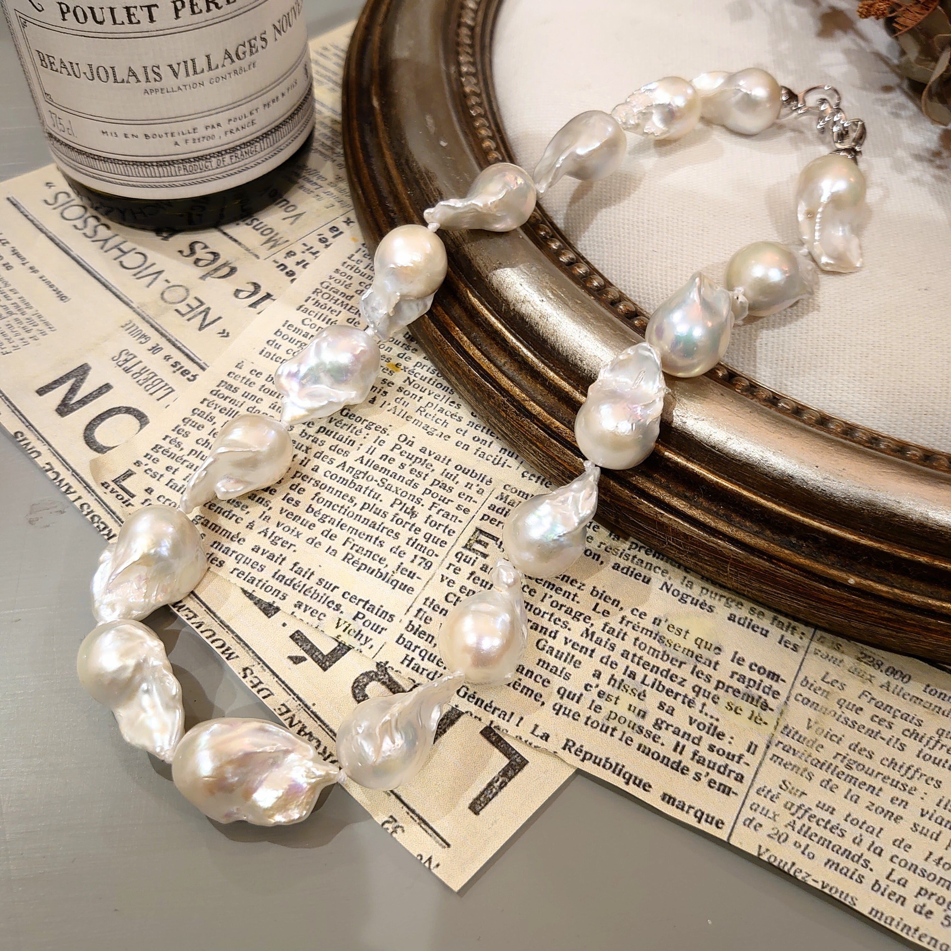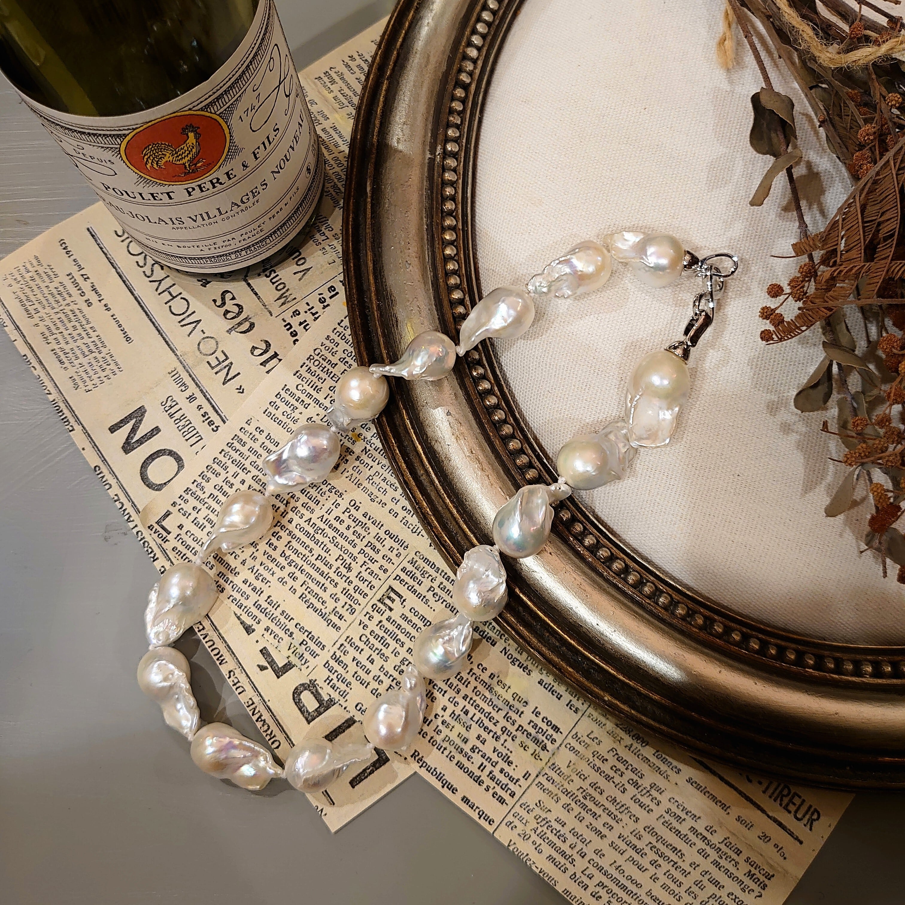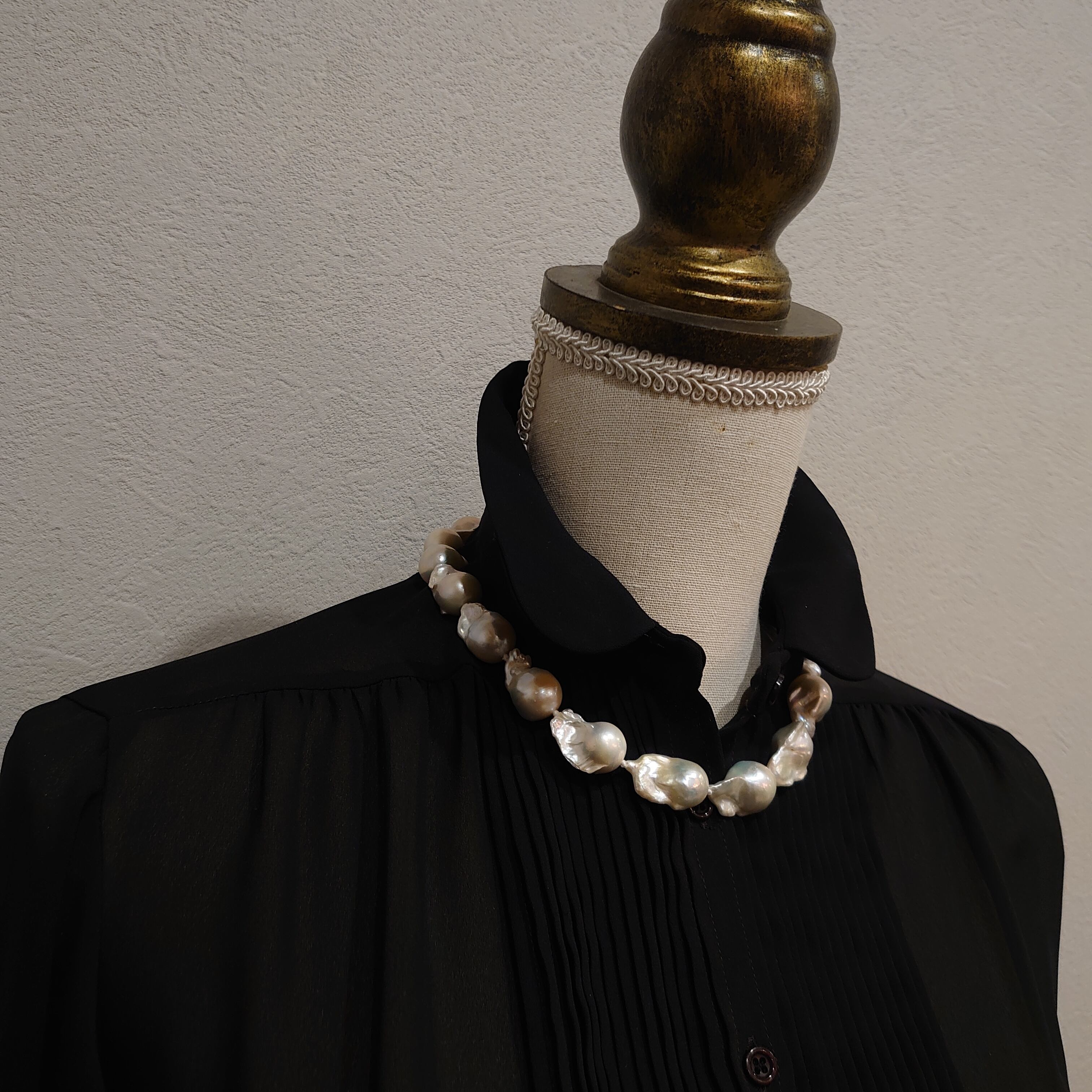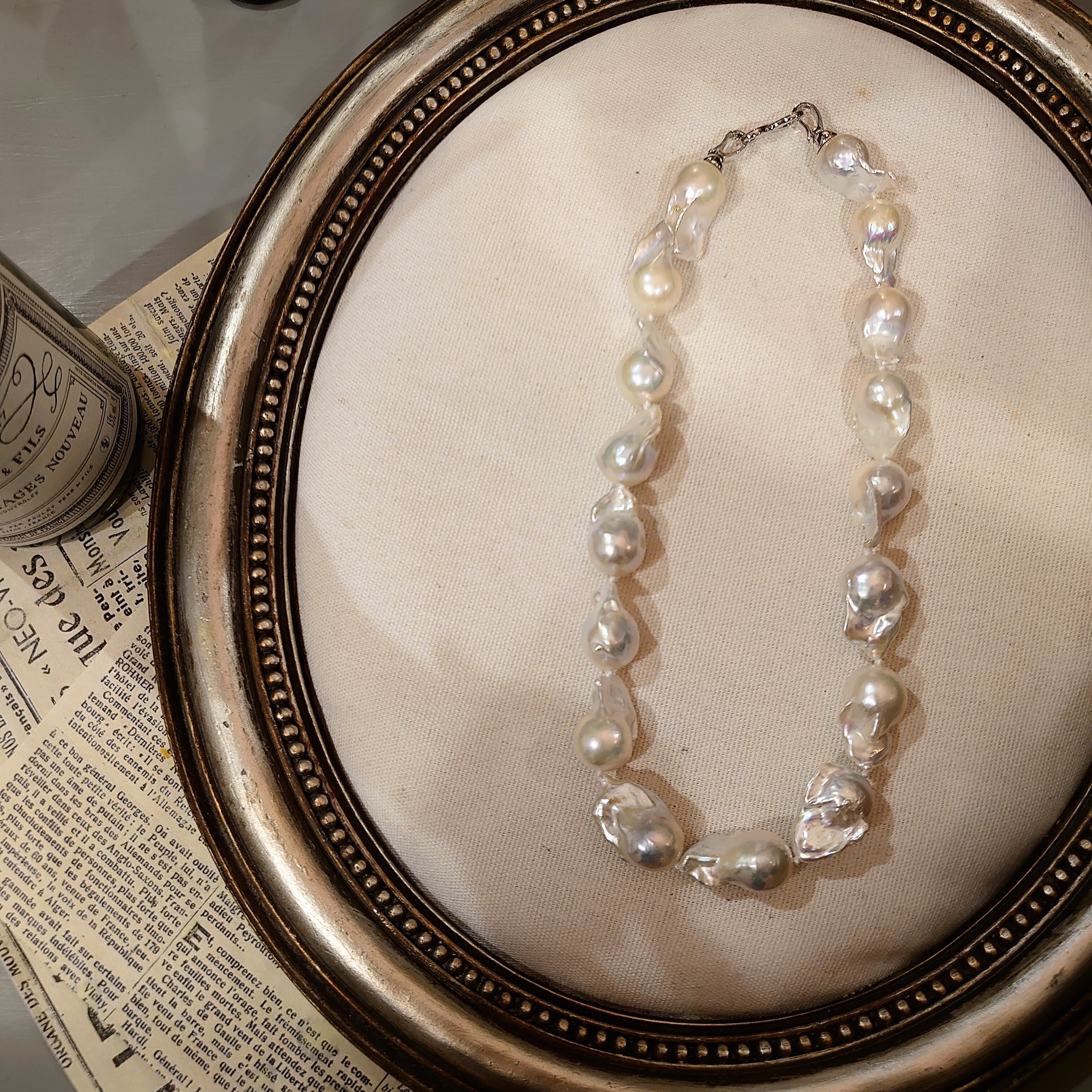 大粒の美しいバロックパールで作られたネックレスは存在感と気品を兼ね備えた逸品となっています。