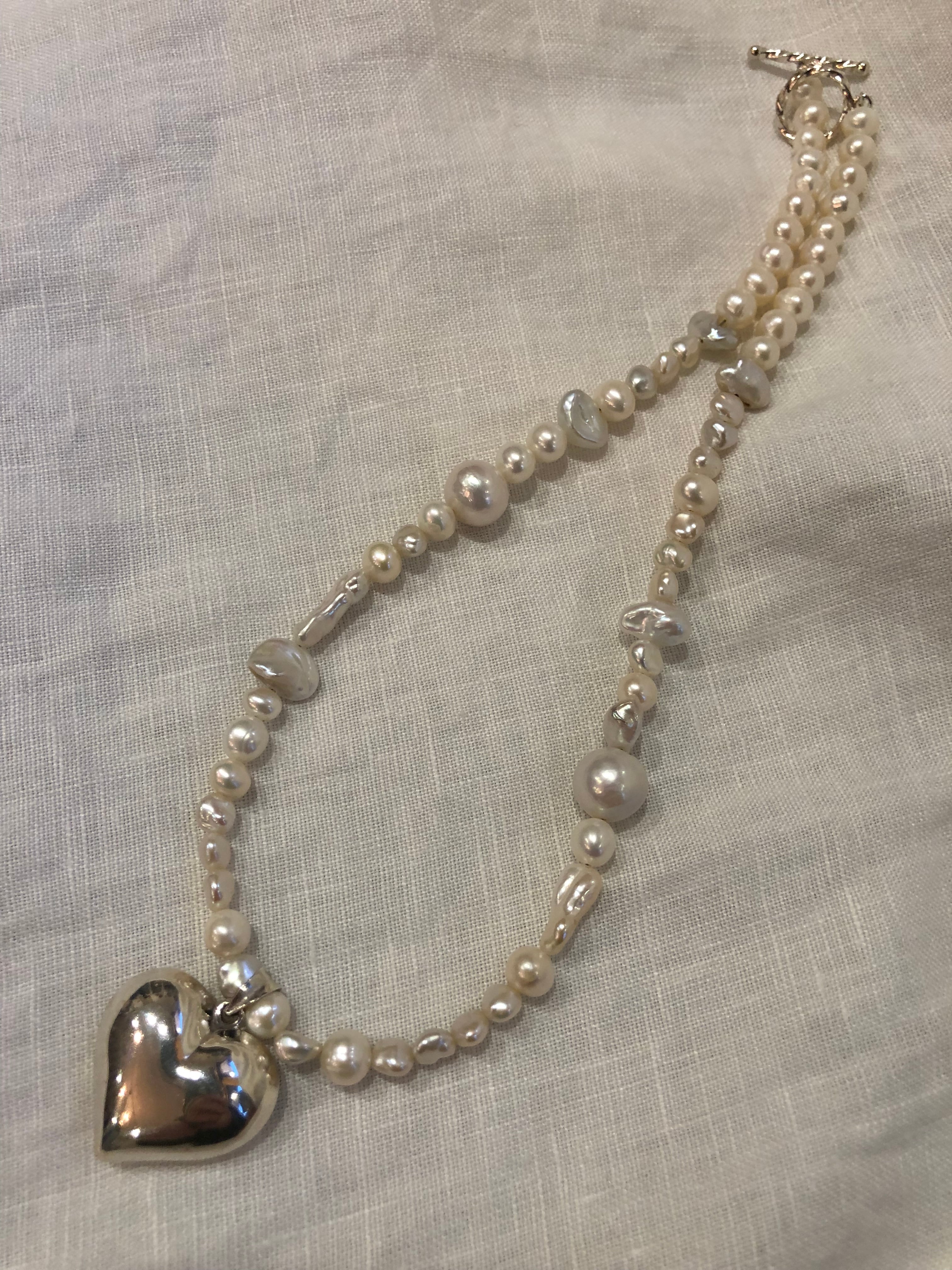 Doux grainラゲットパールネックレス×ヴィンテージシルバーハートチャーム