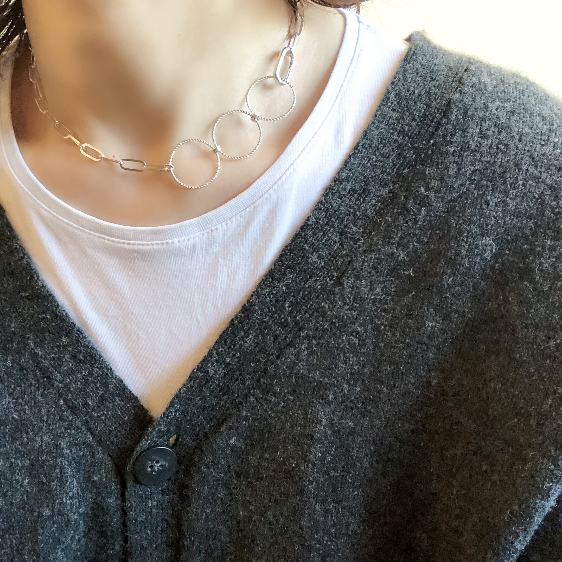 チェーンはゴツめのデザインですがとても軽量でストレスなく付けて頂けます。