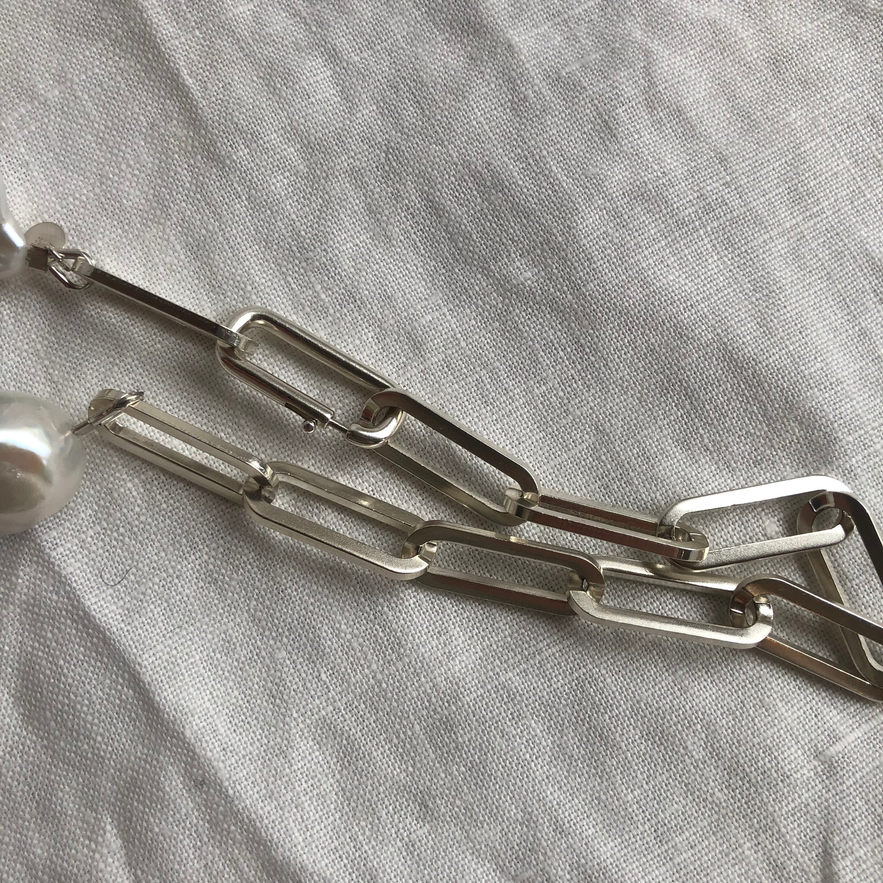 とても太いsilver925のチェーンに大きなバロックパールをMIXさせたネックレスです。