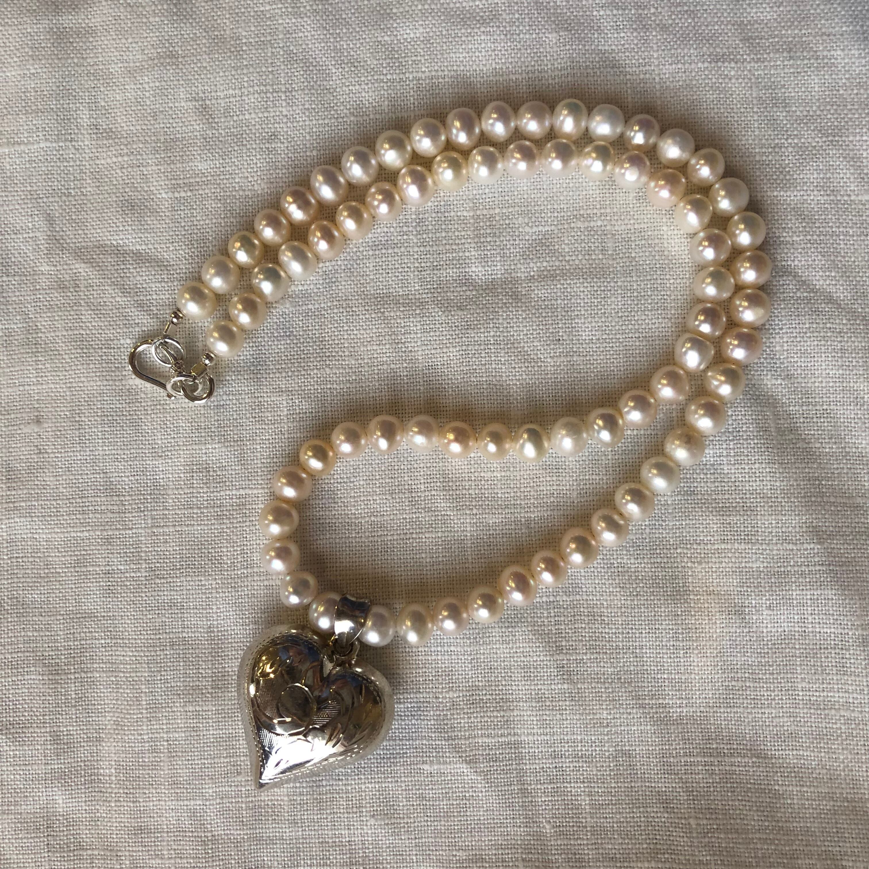 アメリカで購入したヴィンテージのハートチャームを合わせました。