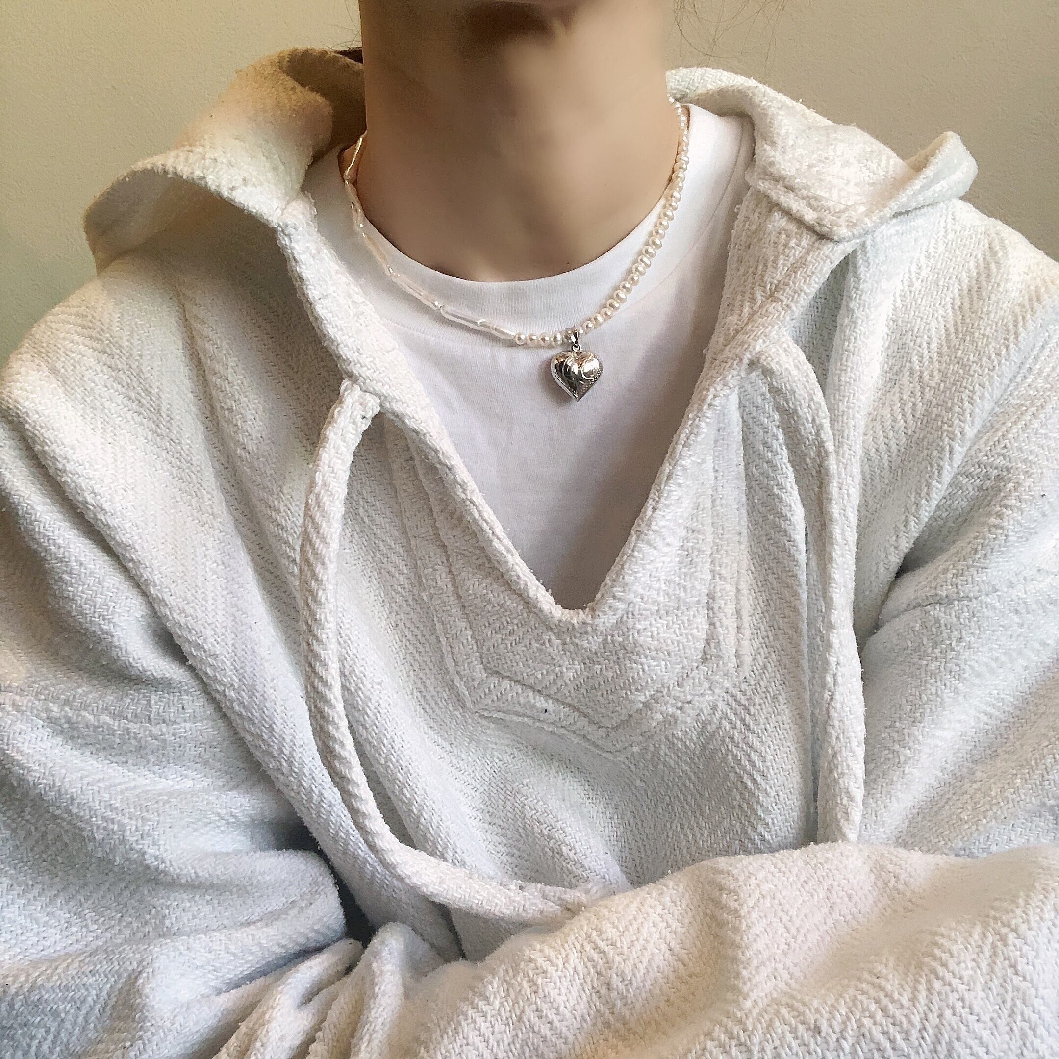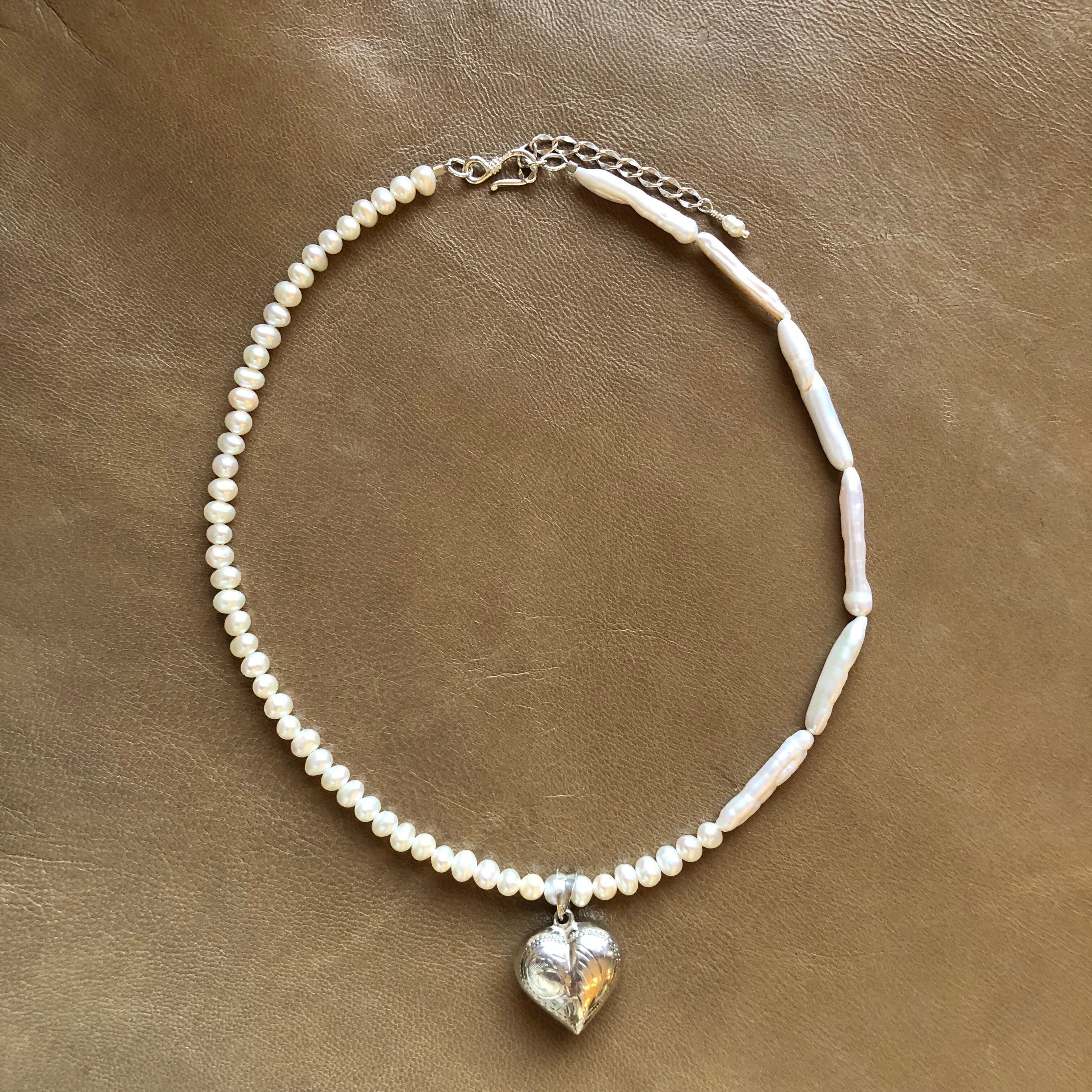 Doux grain パールネックレス×ヴィンテージハートチャーム