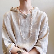 留め具に通してラリエットの様にお使い頂く事もできます。ラフな雰囲気がとても素敵です。