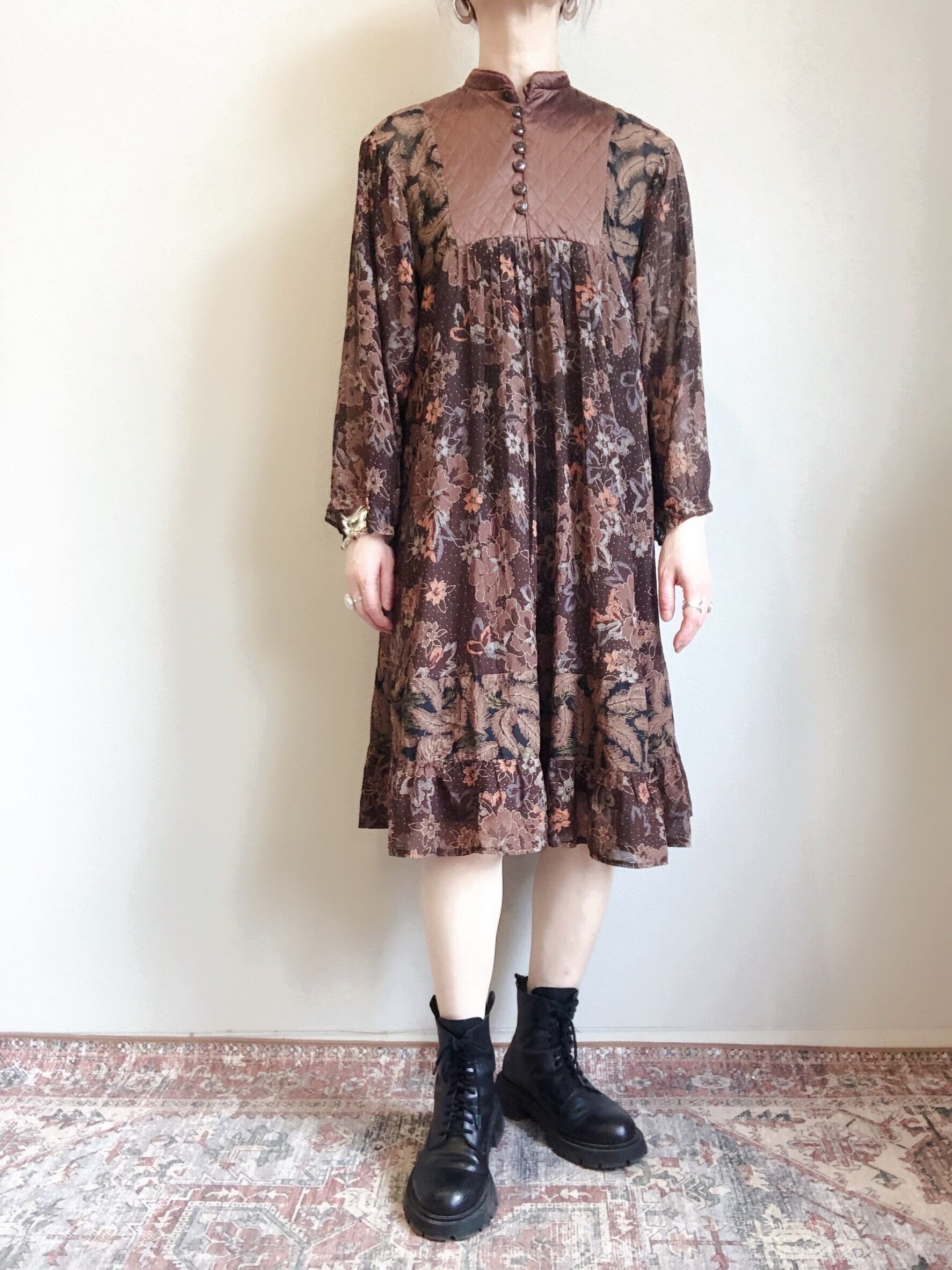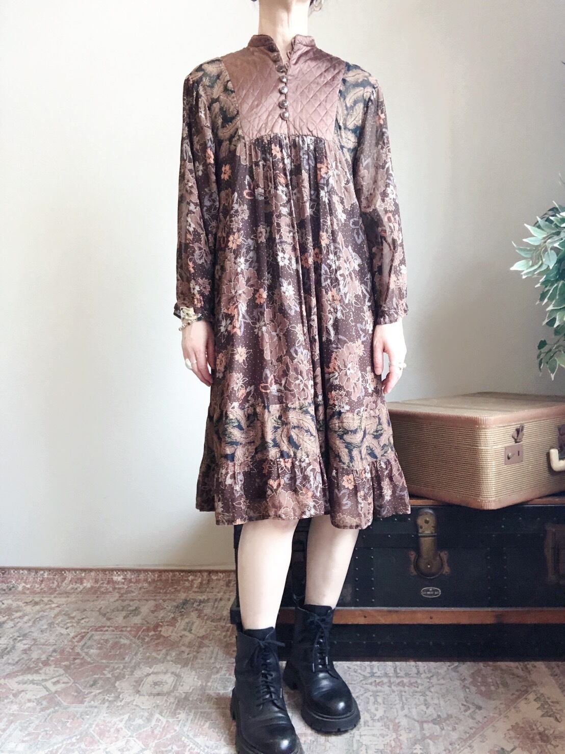 70年代頃のキルティングパネルのワンピースです。