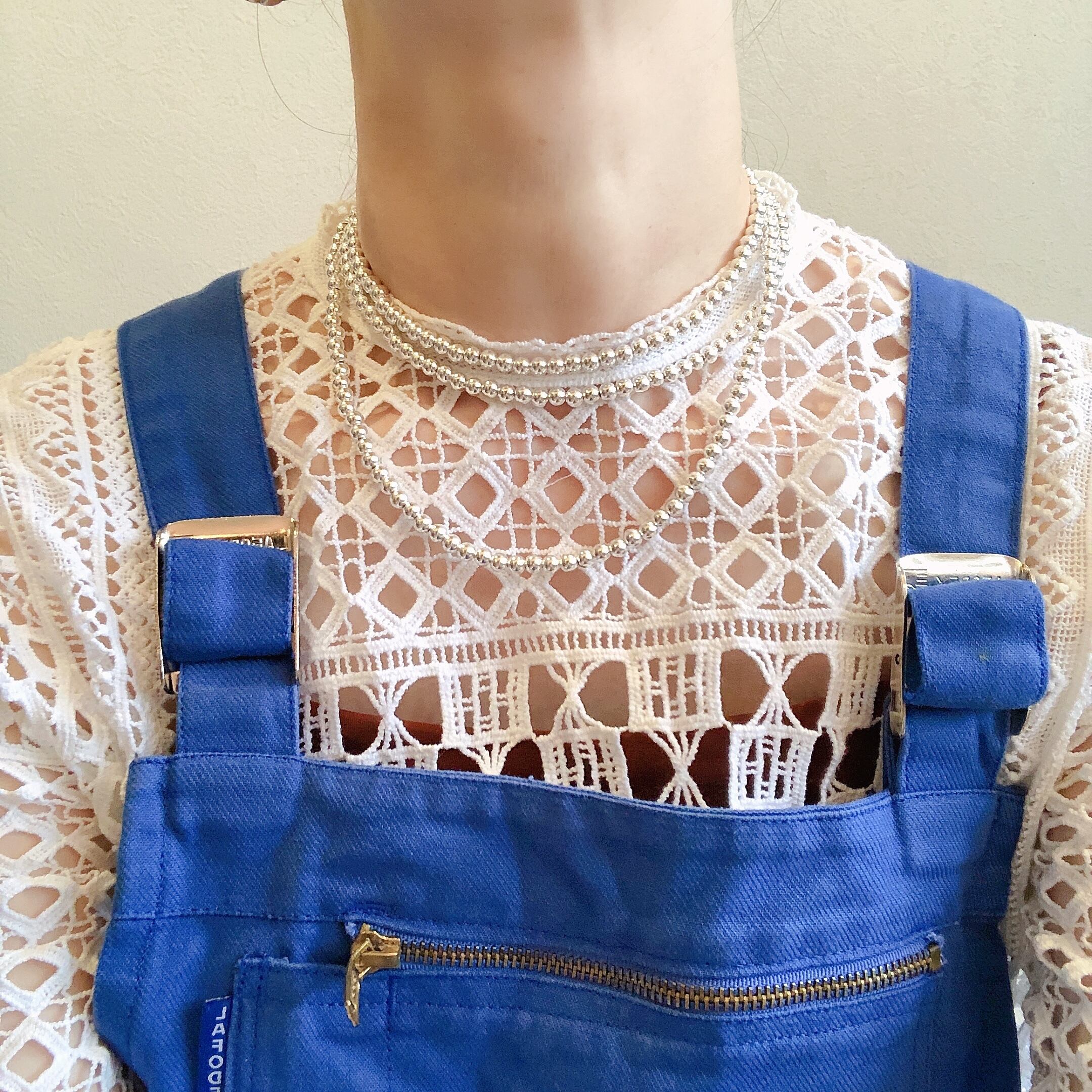 シルバーパールネックレス5mmナバホパールネックレスsilver925