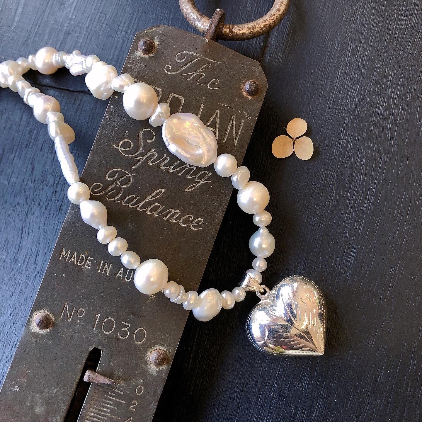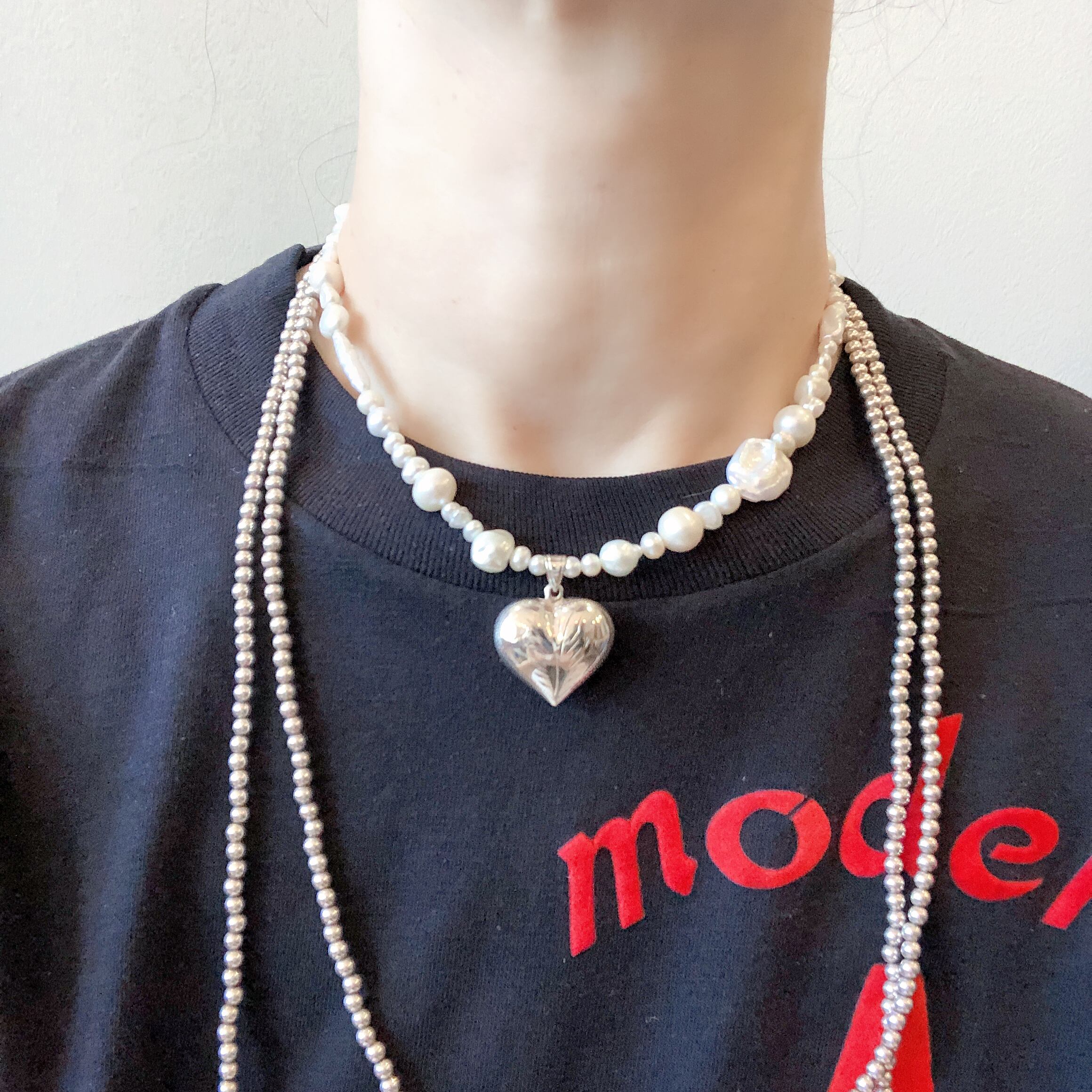 ヴィンテージsilver925ハートチャーム×パールネックレス