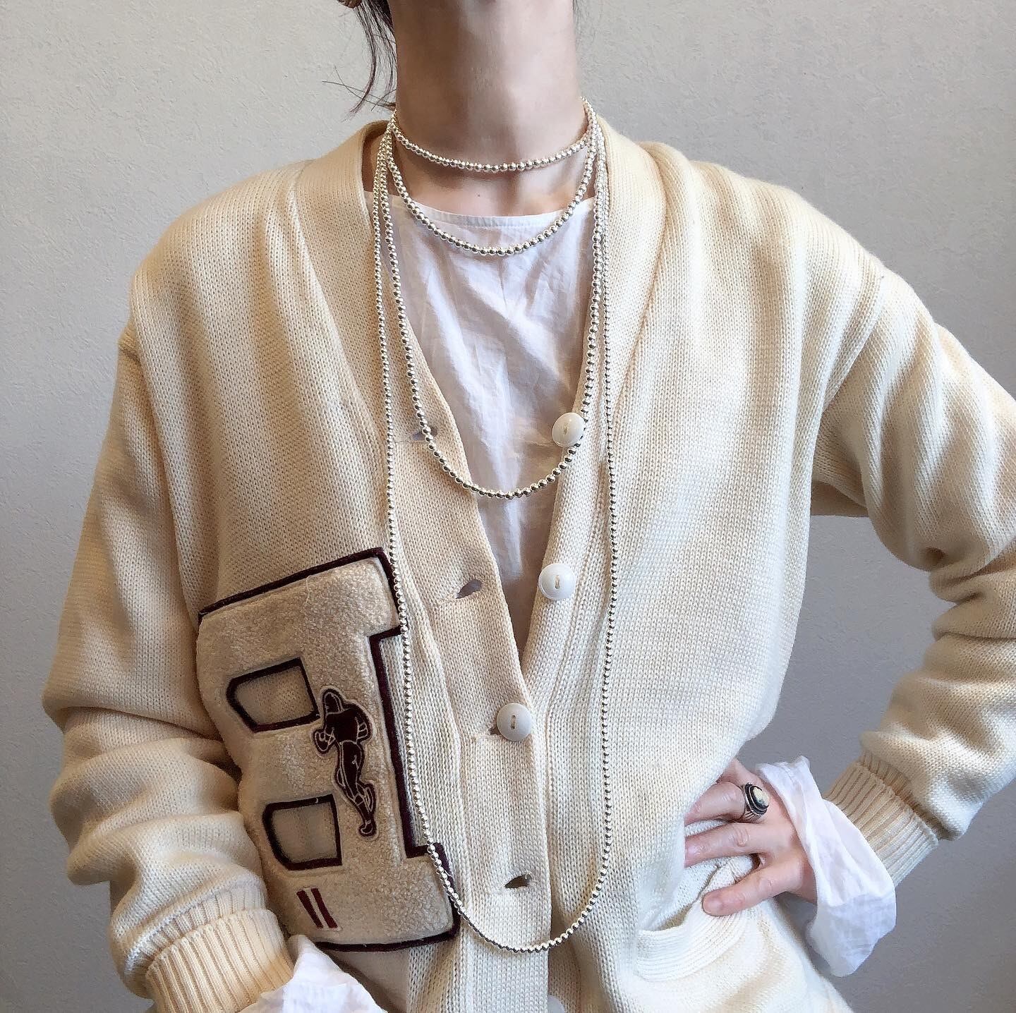 シルバーのパールがこなれ感のある印象に。