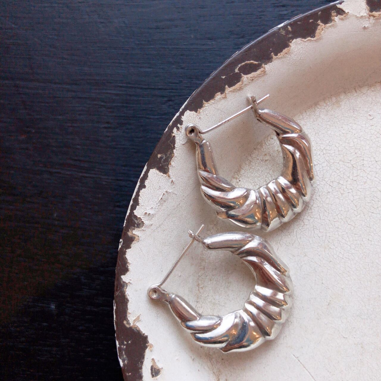 ヴィンテージパフィーデザインフープピアスsilver925